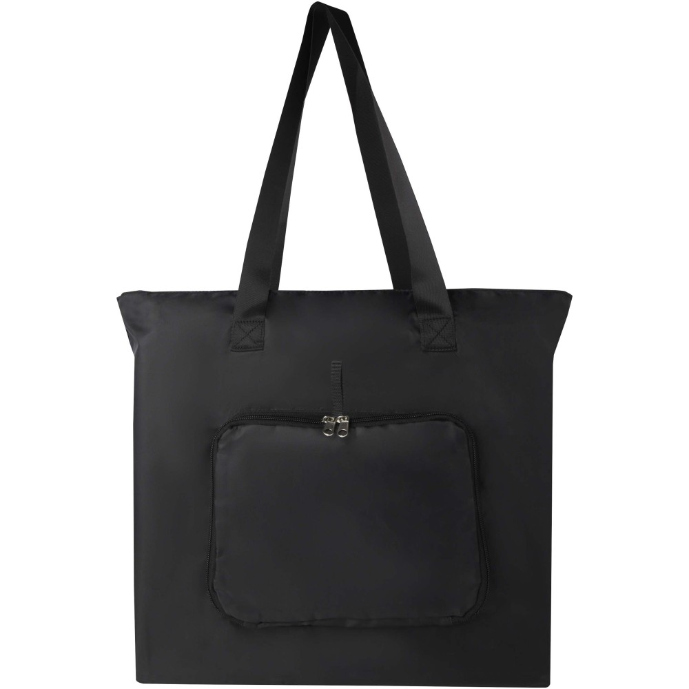 Ez a könnyű, mégis tartós bevásárlótáska a kényelem és praktikusság jegyében készült. Könnyedén a kompakt tasakba hajtható, amelyen hurok található a kényelmes hordozás érdekében - tökéletes rohanós napokra, spontán bevásárlásokhoz vagy tartalék táskaként. Tágas cipzáras főrekesszel, cipzáras elülső zsebbel és két hosszú, sima szövött anyagból készült fogantyúval rendelkezik. PVC-mentes újrahasznosított poliészterből készült. Űrtartalma: 16 liter.