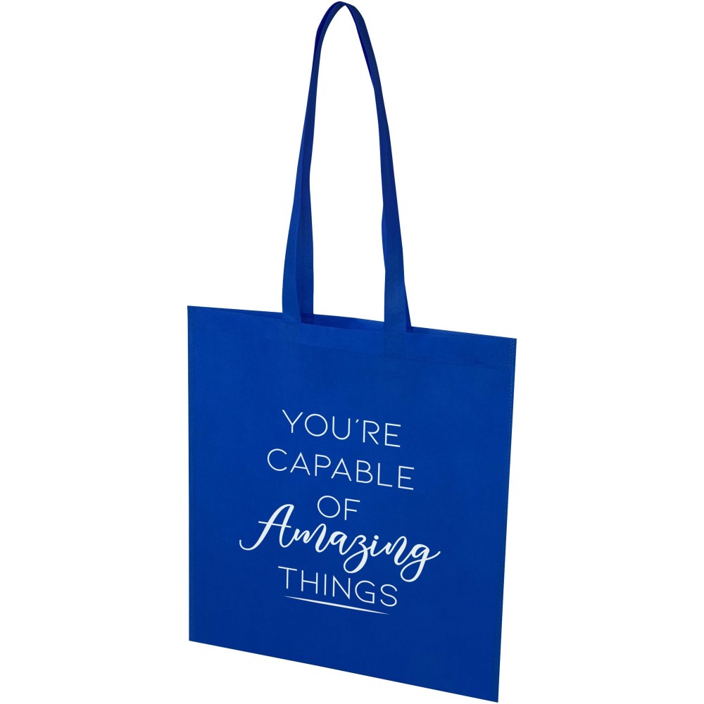 Az EcoSeal GRS tanúsítvánnyal rendelkező, újrahasznosított bevásárlótáska tartós és szakadásálló RPET anyagból készült. Ultrahangos hőhegesztéssel készült, varrásmentes kivitelben, stancolt fülekkel. A 30 cm hosszú fülek kényelmes hordozást biztosítanak. Könnyű, mégis erős szerkezete akár 5 kg súly hordozására is alkalmas. Ideális mindennapi használatra, vásárokra vagy promóciós ajándékként. Űrtartalom: 6 liter.