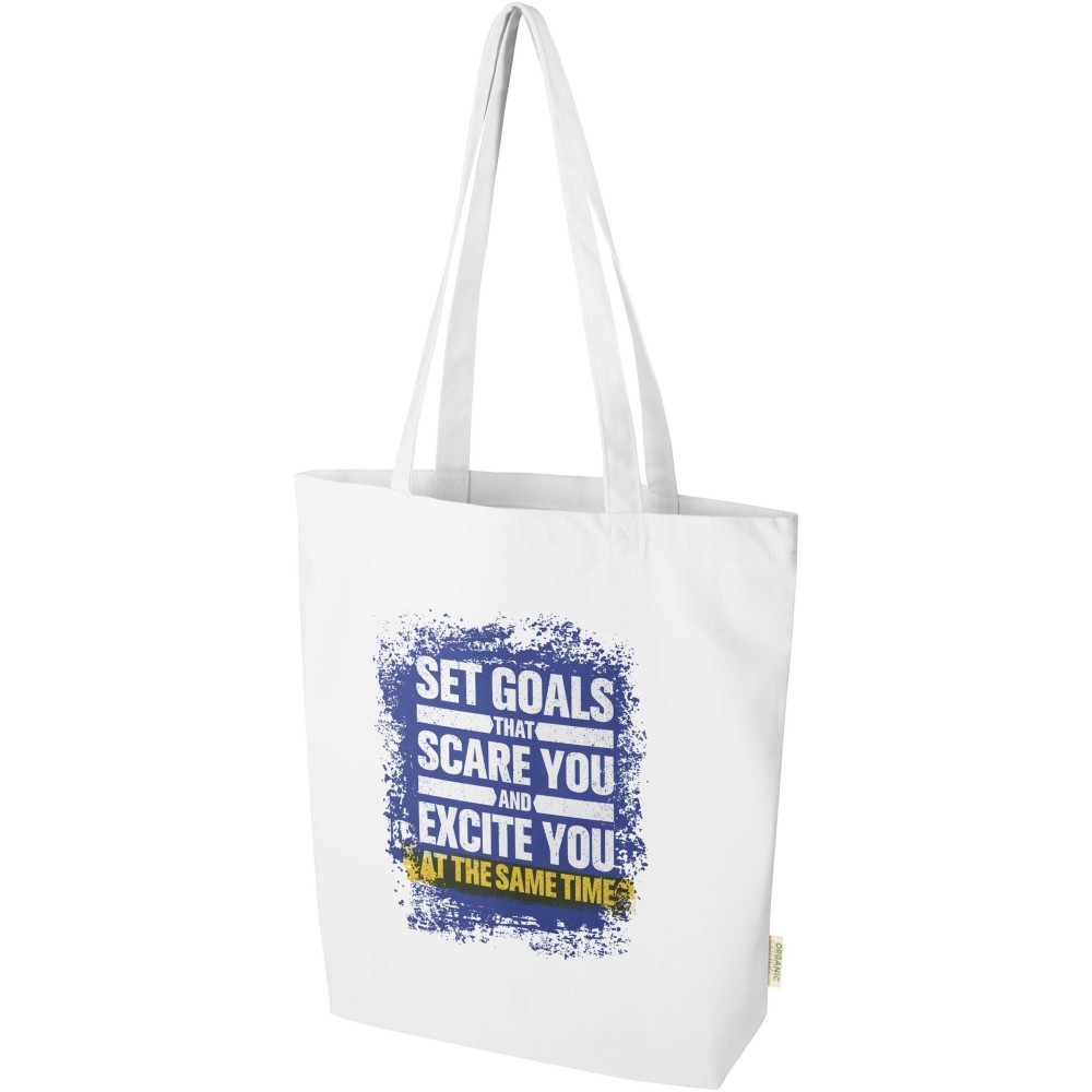 OCS tanúsítvánnyal rendelkező, 100% organikus pamutból készült organikus pamutból készült Odisha bevásárlótáska tartós és felelősségteljes választás a mindennapi használatra. Szélesített talpkialakítása extra helyet biztosít a legfontosabb dolgoknak, így bármilyen alkalomra alkalmas a bevásárlástól kezdve a szabadidős tevékenységekig. Teherbírása: 10 kg. Űrtartalma: 10 liter. 270 g/m2 anyag.