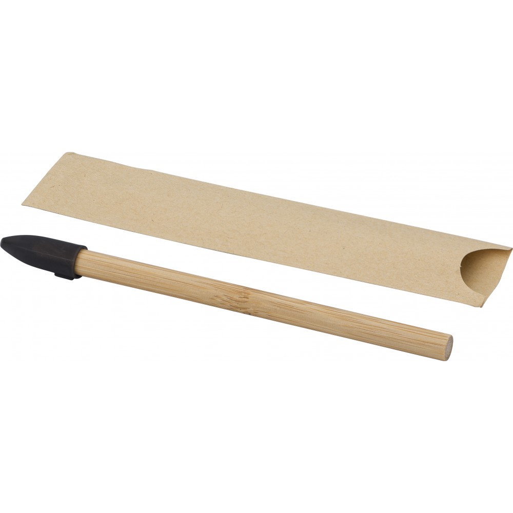 Bambusz ceruza újrahasznosított anyagból készült védőkupakkal. Csomagolása barna papírtok.