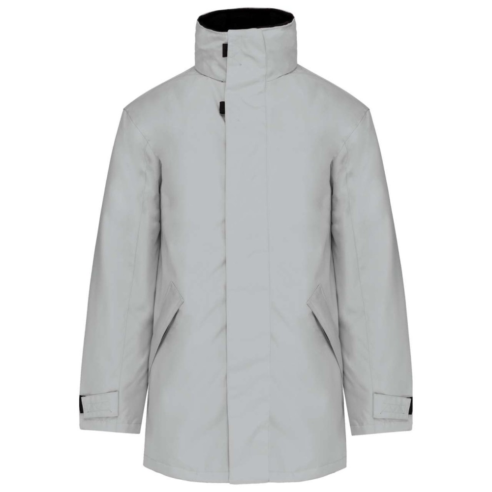 100% poliészter Oxford külső anyag, poliészter töltés és bélés. Viharálló, tépőzáras gallér, rejthető kapucni polár béléssel, nagy, tépőzáras belső zseb, két cipzáras oldalzseb, belül mobiltaró zseb, tépőzárral állítható kézelő, emblémázás számára kialakított bélés. 450 g/m2. XS-3XL. Bizonyos színek 4XL méretig kaphatóak.