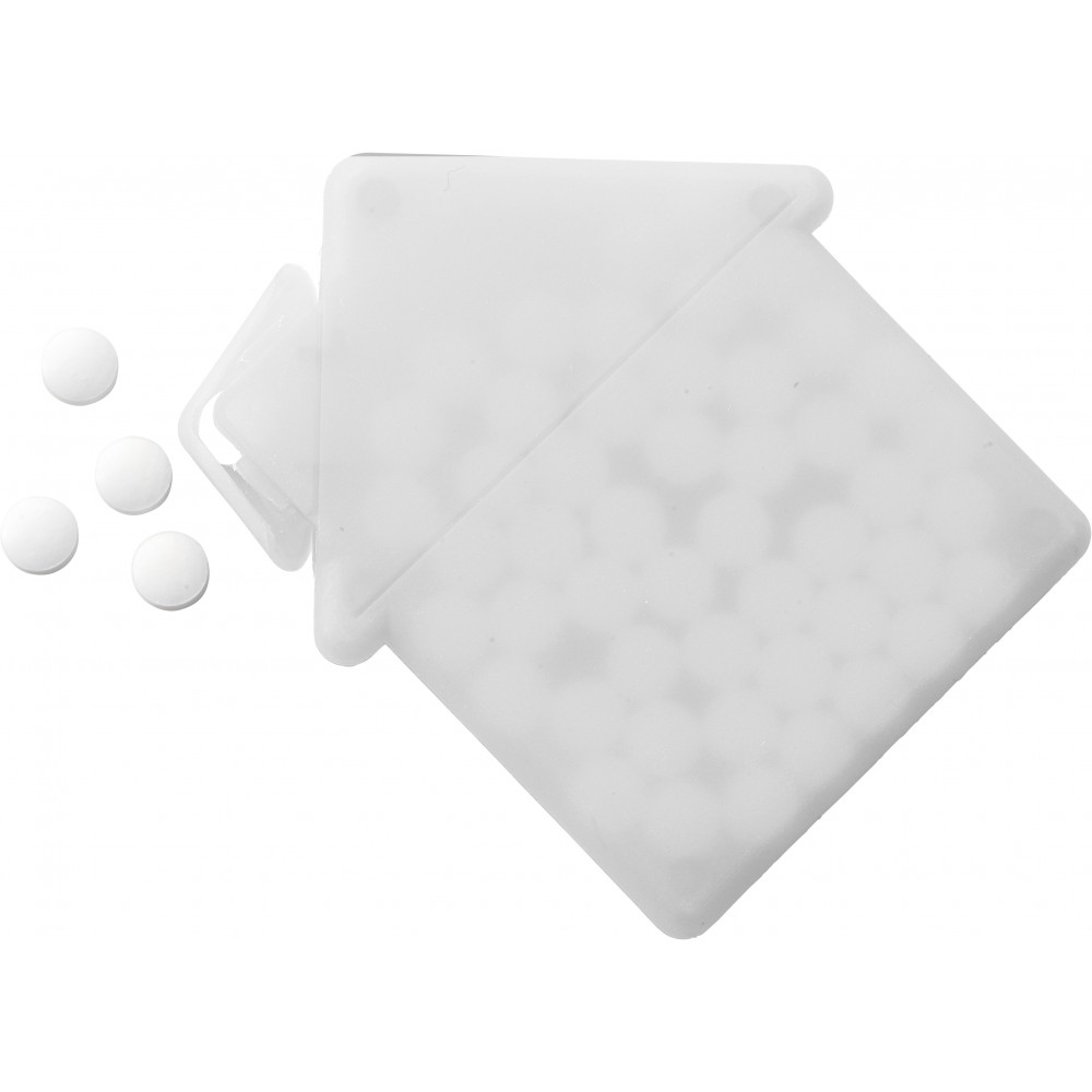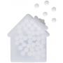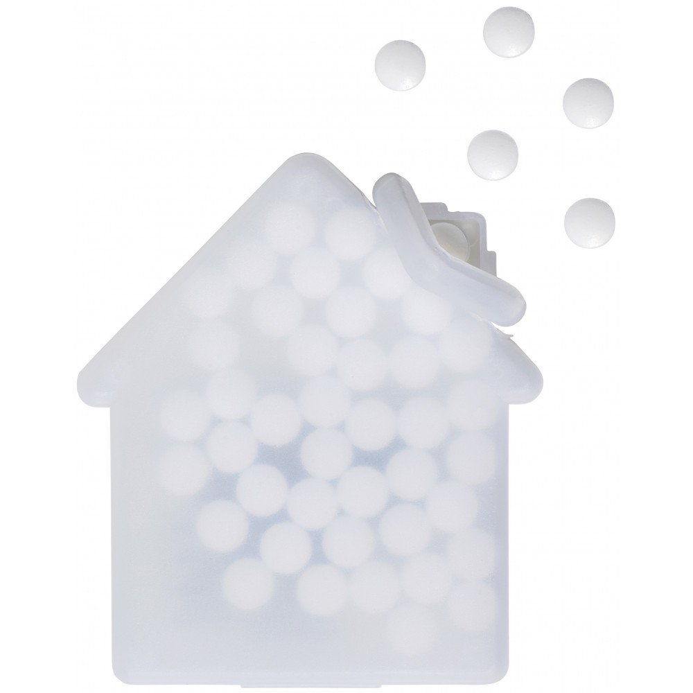 Ház alakú cukorka. 6,5 g cukormentes cukorkát tartalmaz.