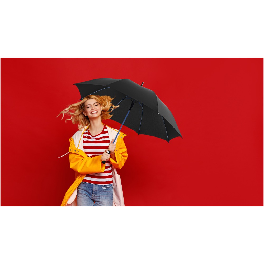 Automata 23 -es esernyő. Selyem ernyőrész, hozzá tartozó tokkal, színes üvegszálas nyél és üvegszálas bordák. Színes, hozzáillő varrat az esernyő zárószíján. Exkluzív kivitel.