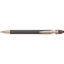 Alumínium golyóstoll rózsaarany részletekkel és érintővel, kék tollbetéttel.