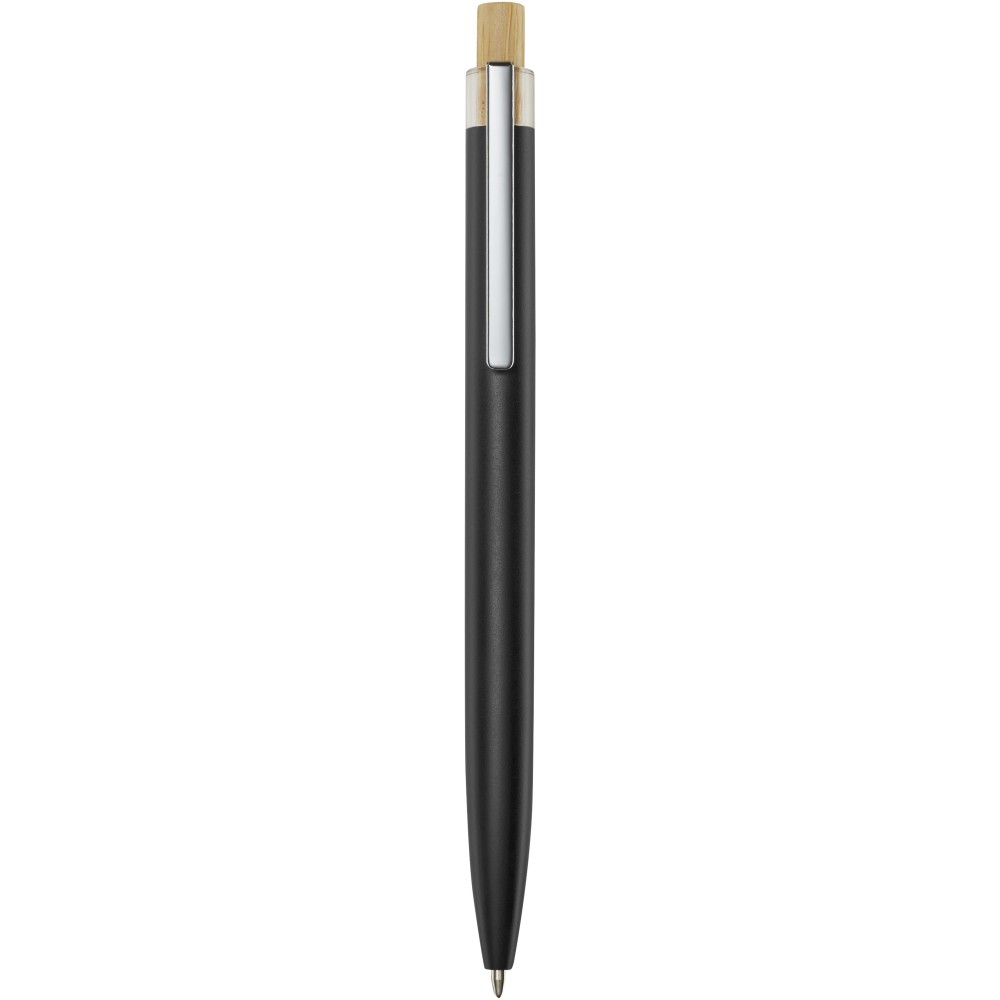A Nooshin golyóstoll újrahasznosított alumíniumból készül, ami kevesebb energiát igényel, mint az alumínium nyersanyagból történő előállítása. Emellett csökkenti a hulladéklerakókba kerülő hulladék mennyiségét és hozzájárul a természeti erőforrások megőrzéséhez, amelynek célja az üvegházhatású gázok kibocsátásának csökkentése. A nyomógomb bambuszból készült. Tollbetét színe: kék. Íráshossz: 800 méter. Tollhegy mérete: 1,00 mm.