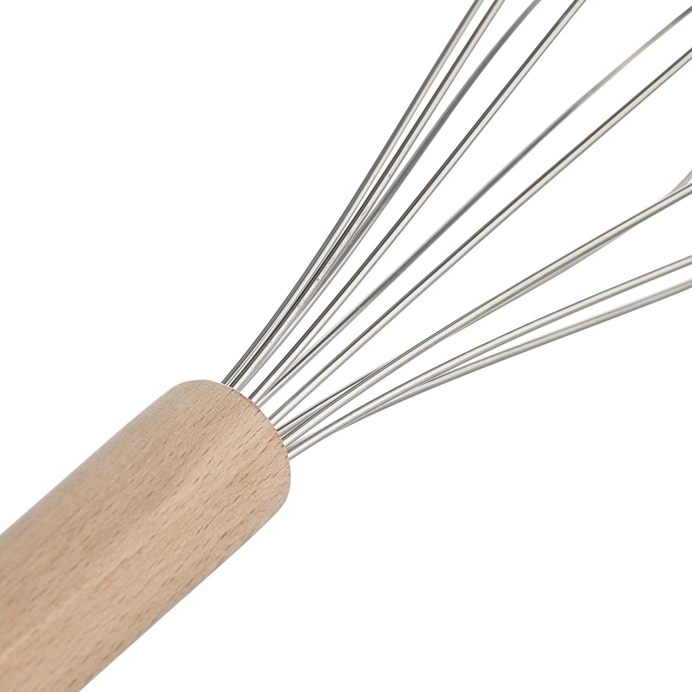 Rozsdamentes acél kézi habverő bükkfa nyéllel. Ideális a mindennapi főzési feladatokhoz.