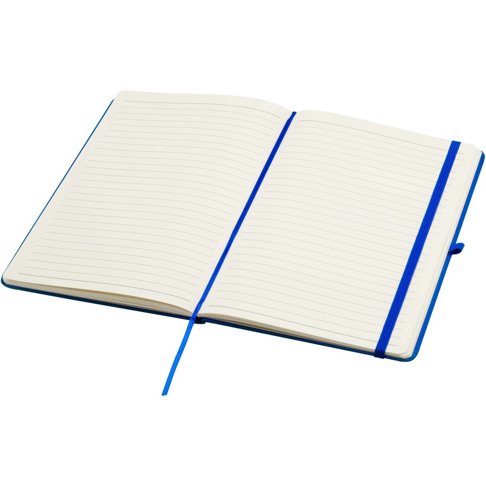 A Spectrum Plus A5 keményfedeles jegyzetfüzet lekerekített sarkokkal nemcsak az irodai mindennapok elengedhetetlen kelléke, hanem remek lehetőség márkád népszerűsítésére is. A jegyzetfüzet puha tapintású borítóval rendelkezik és 80 vonalas, krémszínű, 70 g/m2-es lapból áll, amely tökéletes gyors ötletek vagy hosszabb jegyzetek rögzítésére. A jegyzetfüzet tolltartó hurokkal, gumiszalagos záródással, könyvjelzővel és harmonikazsebbel van ellátva.