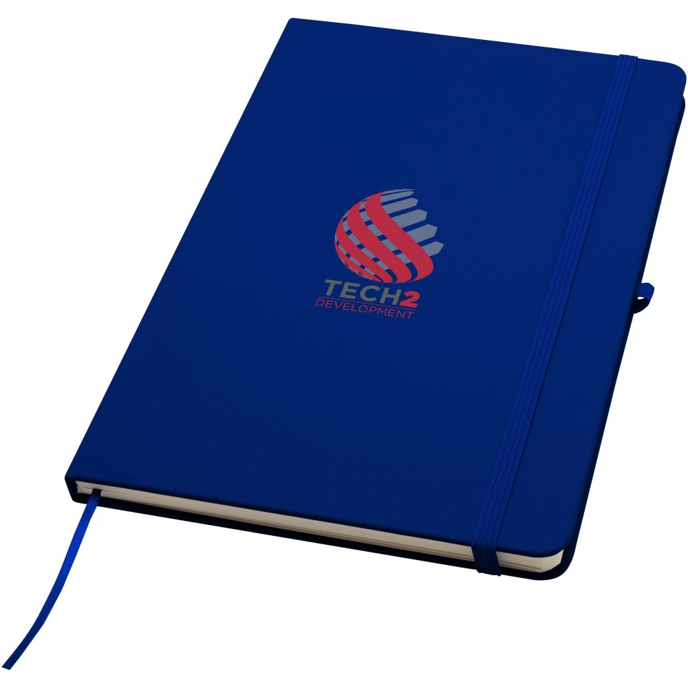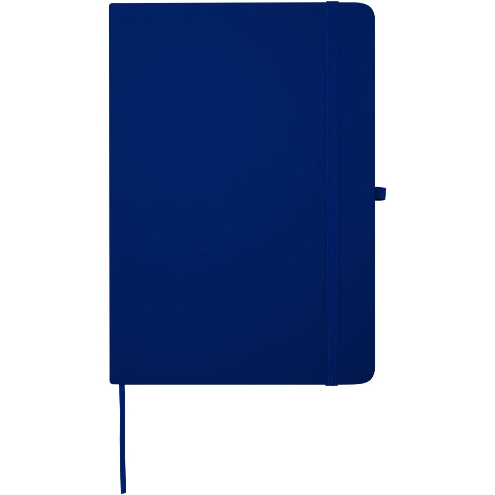 A Spectrum Plus A5 keményfedeles jegyzetfüzet lekerekített sarkokkal nemcsak az irodai mindennapok elengedhetetlen kelléke, hanem remek lehetőség márkád népszerűsítésére is. A jegyzetfüzet puha tapintású borítóval rendelkezik és 80 vonalas, krémszínű, 70 g/m2-es lapból áll, amely tökéletes gyors ötletek vagy hosszabb jegyzetek rögzítésére. A jegyzetfüzet tolltartó hurokkal, gumiszalagos záródással, könyvjelzővel és harmonikazsebbel van ellátva.