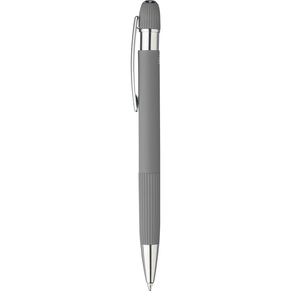 Újrahasznosított PU jegyzetfüzet és golyóstoll szett. A jegyzetfüzet kb. A5-ös méretű, 100 lapos, 80 g/m2-es vonalas lapokkal és szalagos könyvjelzővel, kordbársony hatású borítóval és dombornyomott újrahasznosított logóval rendelkezik. A golyóstoll gumírozott felülettel, csíkos markolattal, krómozott heggyel és lézergravírozott újrahasznosított logóval rendelkezik. Erős barna kartondobozban, EVA betéttel. Kék tollbetéttel szállítjuk.