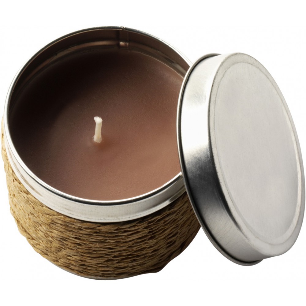 Illatgyertya fémdobozban. Illatok: 02/vanília, 11/kávé, 13/fahéj. 08/alma-fahéj.