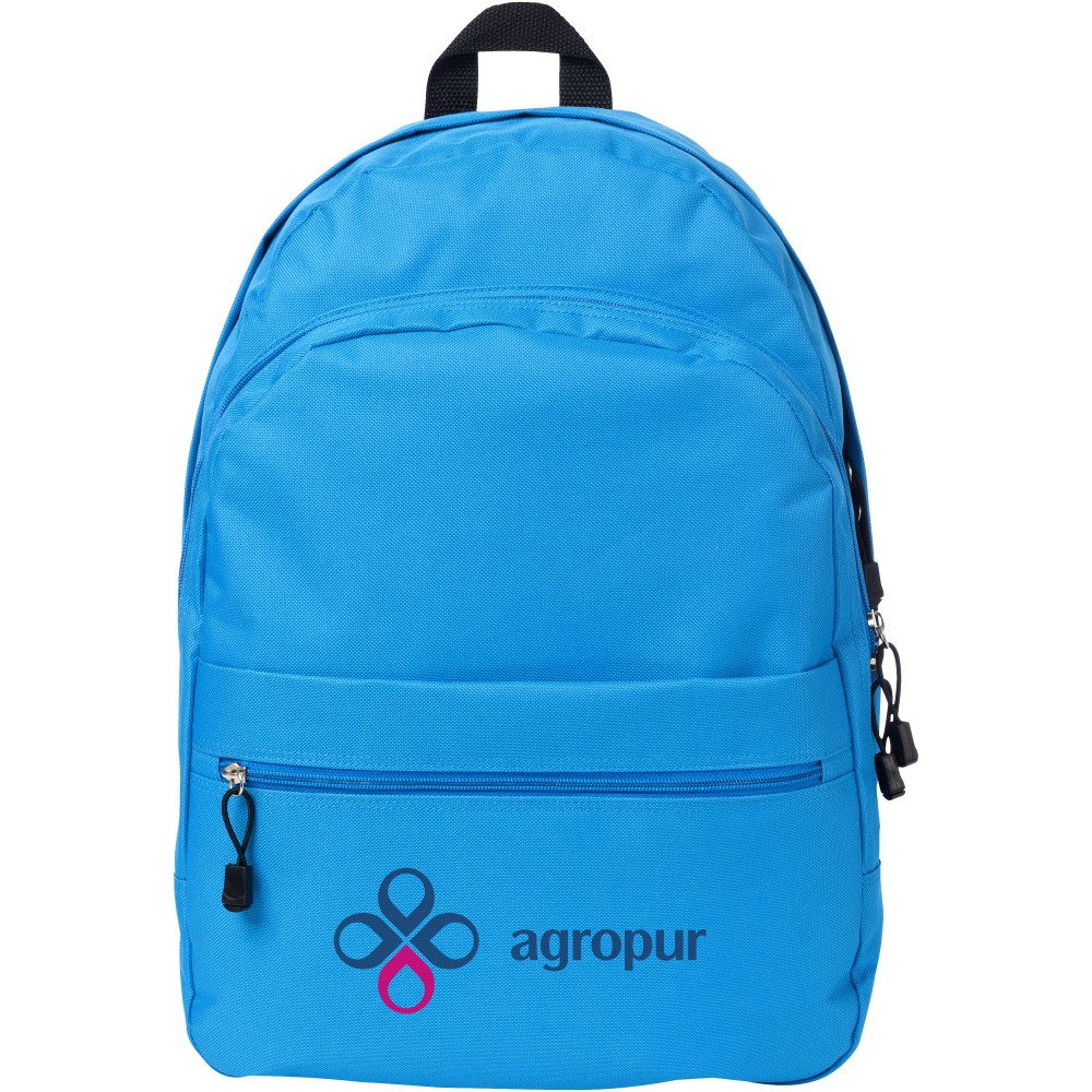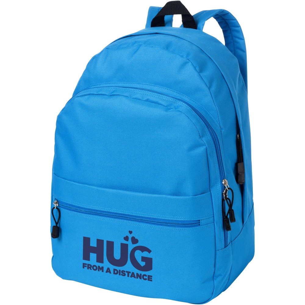 A kényelmes Trend hátizsák nyerő a promóciós hátizsákok között. A divatos kialakítású táska négy rekesszel rendelkezik: két cipzáras rekesszel, egy elülső cipzáras zsebbel és egy tépőzáras elülső zsebbel, így bőséges helyet kínál nagy és kis tárgyak tárolására egyaránt. A termék 600D poliészterből készült.