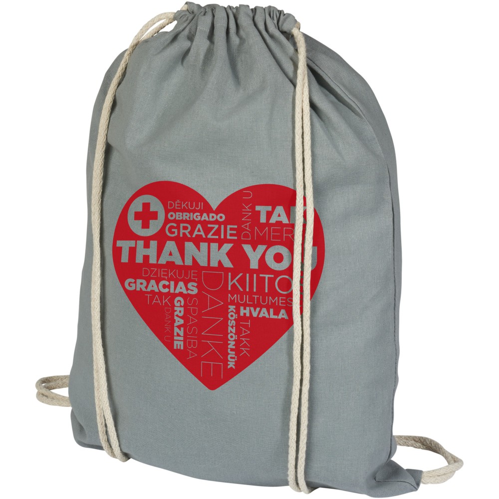 Húzózsinórral zárható nyitott fő rekesz. 100 g/m2 pamut.