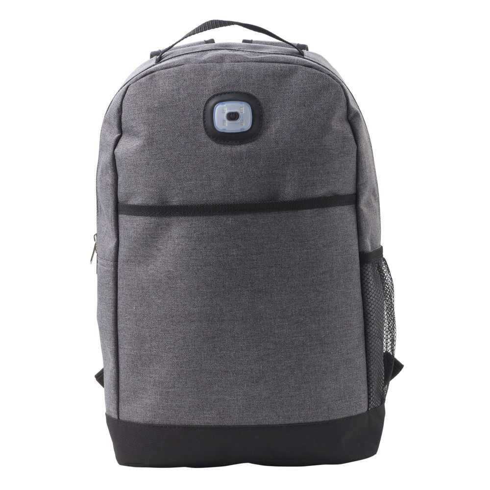 Kéttónusú hátizsák állítható és párnázott vállpánttal, párnázott hátkialakítással. Egy nagy főrész, elsőzseb és oldazseb. A hátizsák elején a COB fény kétféle állásban használható: folyamatos fehér vagy villogó piros. 300D és 210D poliészter. Az elemet tartalmazza.