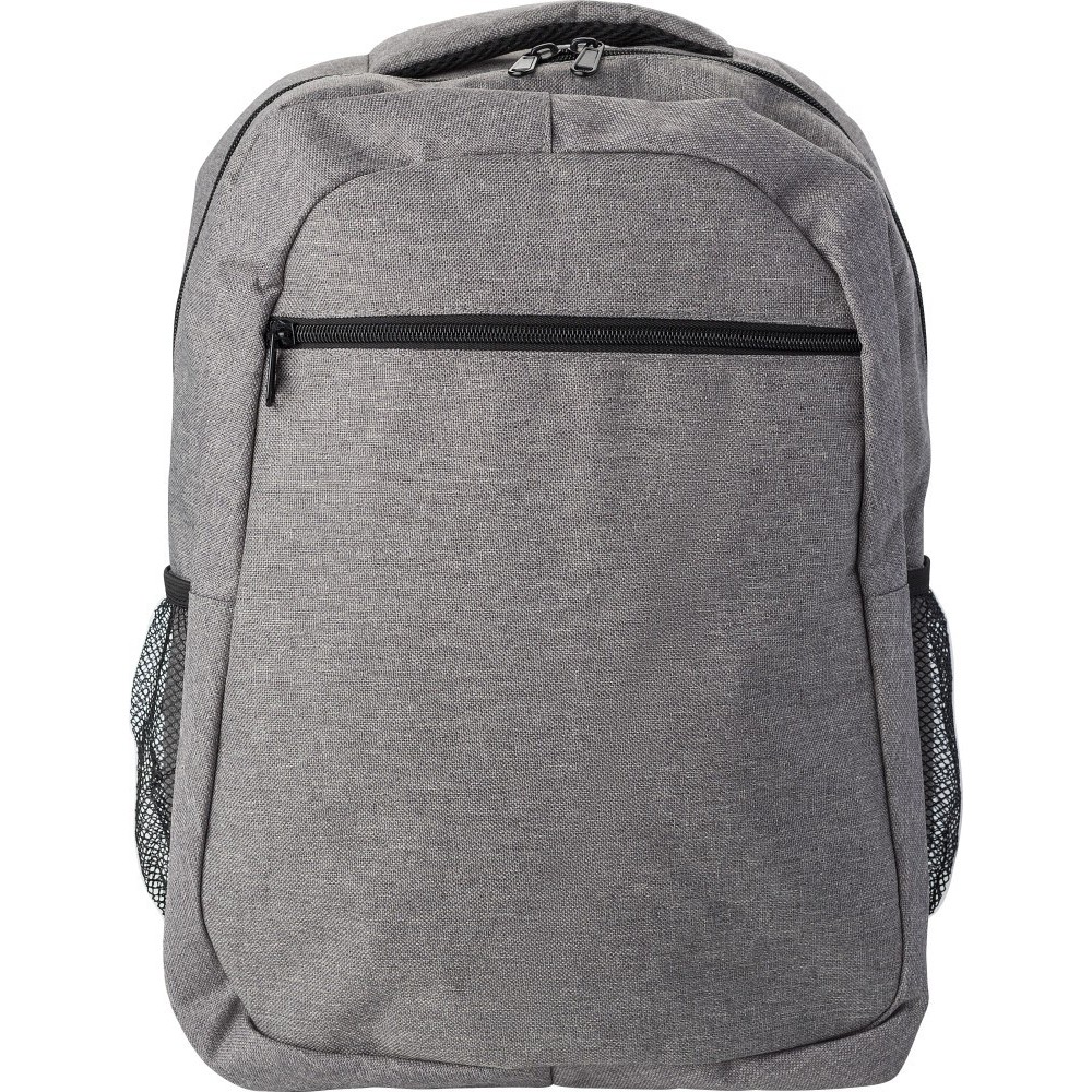 Hátizsák cipzáras elsőzsebbel és állítható vállpántokkal. Belső zseb laptop számára 15"-ig. 2 oldalon hálós zseb. 600D poliészter.