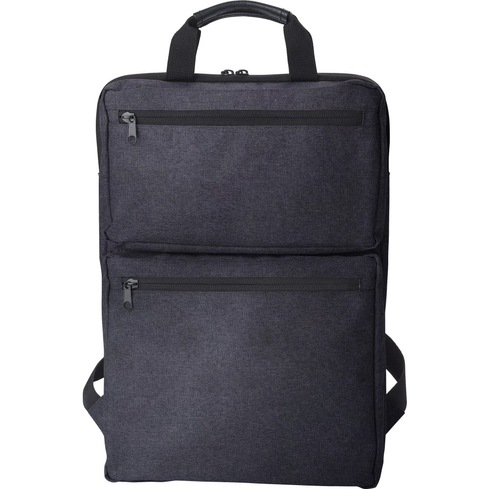 Hátizsák két külső cipzáras zsebbel és laptop rekesszel 15 -es laptop számára. Párnázott vállpántokkal és két rövid fogantyúval a tetején. Művászon 300D.