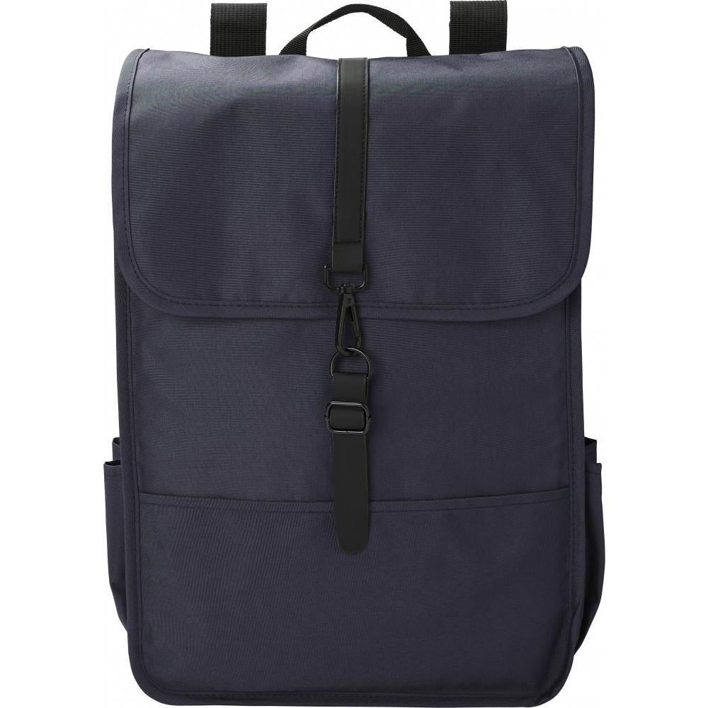 Hátizsák. Két palackzseb az oldalán, egy nagy rekesz. Fekete PU pánttal, csattal zárható. 300D RPET poliészter.
