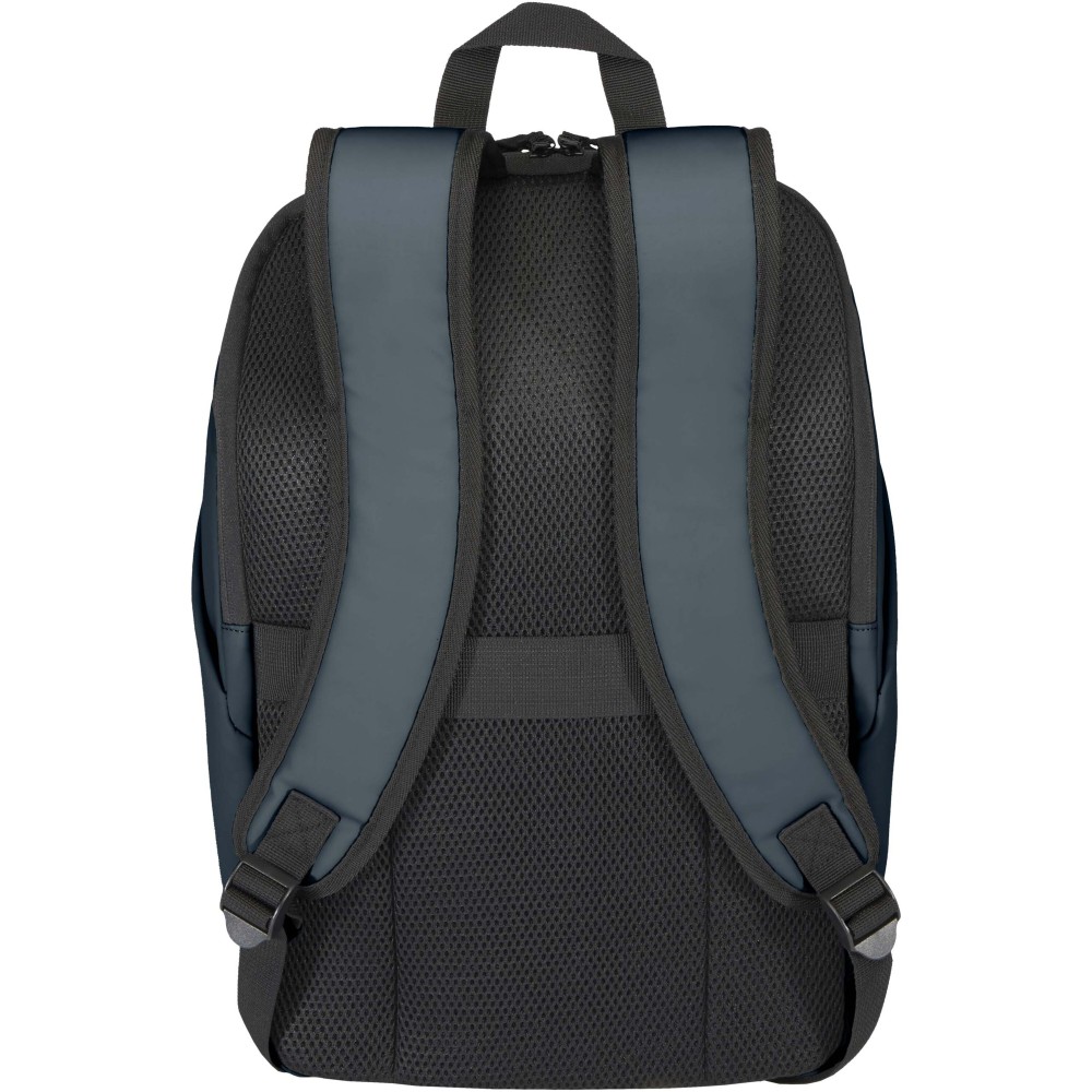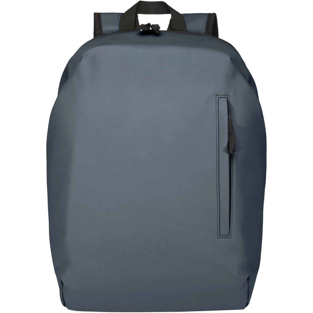 A prémium minőségű, GRS tanúsítvánnyal rendelkező újrahasznosított PU bőrből készült, színben passzoló RPET béléssel ellátott 15?-os biztonsági hátizsák garantálja az értékek védelmét és szárazon tartását útközben. A termék hátulról hozzáférhető laptoprekeszel, két letisztult oldalsó zsebbel, valamint egy vízálló cipzárral felszerelt elülső zsebbel rendelkezik. A légáteresztő hátlap biztosítja az egész napos kényelmet, így ideális választás ingázáshoz, utazáshoz vagy városi használatra. Űrtartalma: 18 liter.