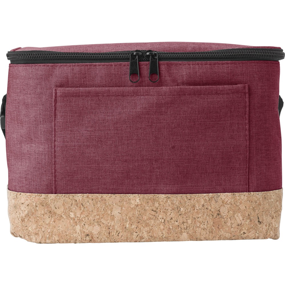 Poliészter (600D) hűtőtáska cipzárral és parafa aljjal, hat darab 0,5 literes doboz számára. A belső anyag EVA.