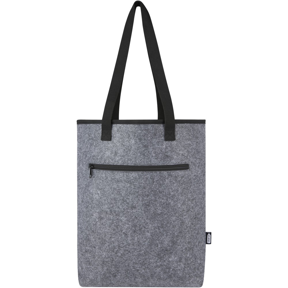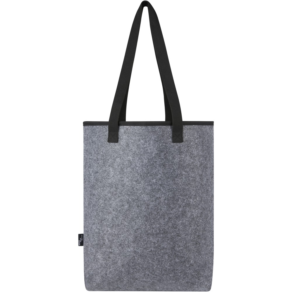 Stílusos hűtőtáska kiváló minőségű puha és tartós, GRS tanúsítvánnyal rendelkező újrahasznosított filcből. Élelmiszerbiztonságos alumínium szigeteléssel bélelt nagy főrekesz, felső oldali tépőzárral zárható, így az italokat, frissítőket és fagyasztott termékeket hosszabb ideig hűvösen és külső hatásoktól védve tartja. Hosszú, szőtt, pamut fogantyúkkal (30 x 2,5 cm), extra széles alsórésszel és cipzáras elülső zsebbel. Akár strandra megy, élelmiszert vásárolni, vagy egyszerűen csak eltölteni egy napot a szabadban a barátokkal és a családdal, ez a táska megtakarítja. GRS tanúsítvánnyal rendelkező újrahasznosított poliészter.