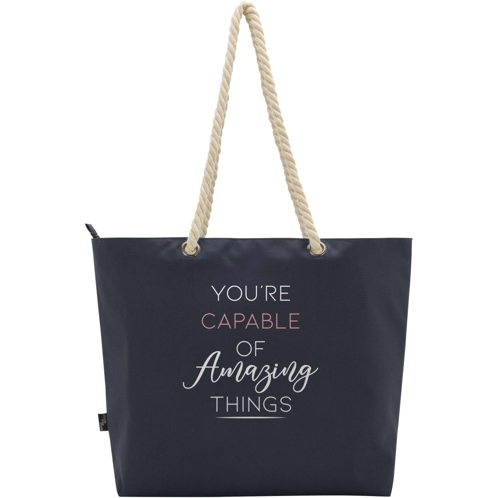 A Panama hűtőtáska GRS tanúsítvánnyal rendelkező újrahasznosított poliészterből készült, és nagy, cipzáras főrekesszel van ellátva. Kiváló minőségű alumínium fóliával bélelt belső résszel és pamut fülekből áll. Ideális bevásárláshoz, strandoláshoz vagy egy parkbéli kiránduláshoz. Űrtartalma: 23 liter. Teherbírás: akár 10 kg. PVC-mentes.