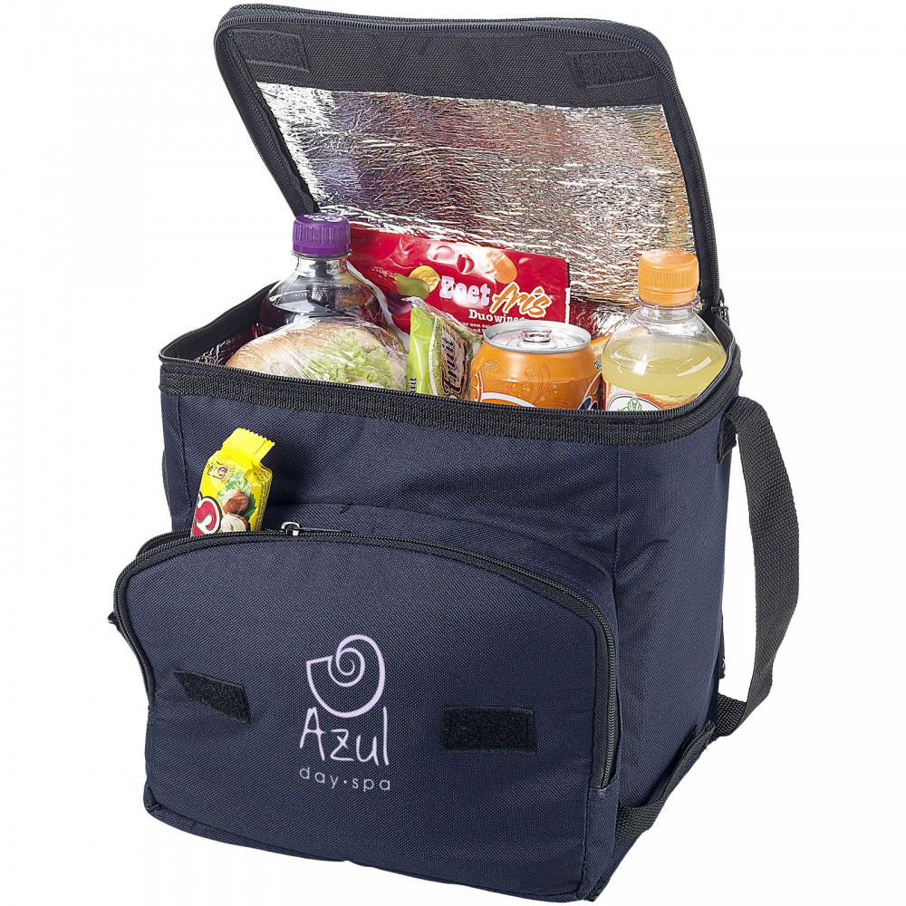 Összehajtható hűtőtáska cipzáras fő rekesszel és cipzáras elülső zsebbel. Állítható vállpánt. A hűtőtáska laposra hajtható az elülső zseben található horog és hurok segítségével. Egyéb kiegészítőt nem tartalmaz.