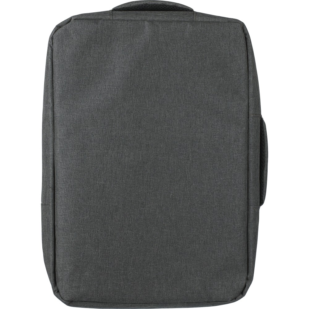 Laptophátizsák 300D rPET poliészter anyagból, 210D rPET béléssel. Egy nagy cipzáras rekesszel, számtalan belső zsebbel, tépőzáras laptoptartó zsebbel 15"-es laptop számára és 12 literes űrtartalommal. Megerősített, szellőző hátrésszel, állítható vállpánttal, oldalsó hordozófüllel és gurulóstáskára való felhelyezésre alkalmas pánttal. Teherbíró képesség: 10 kg.