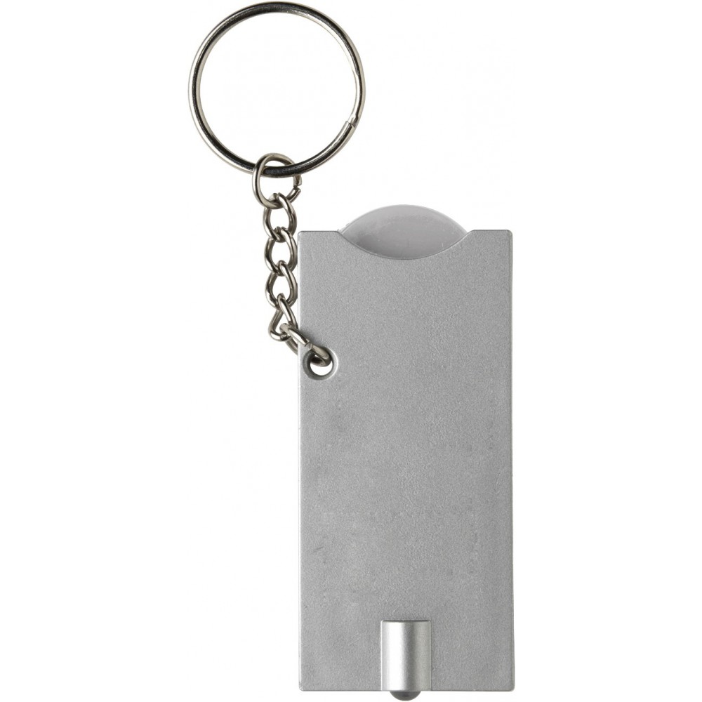 Világítós kulcstartó érmetartóval, ezüst/kék