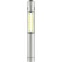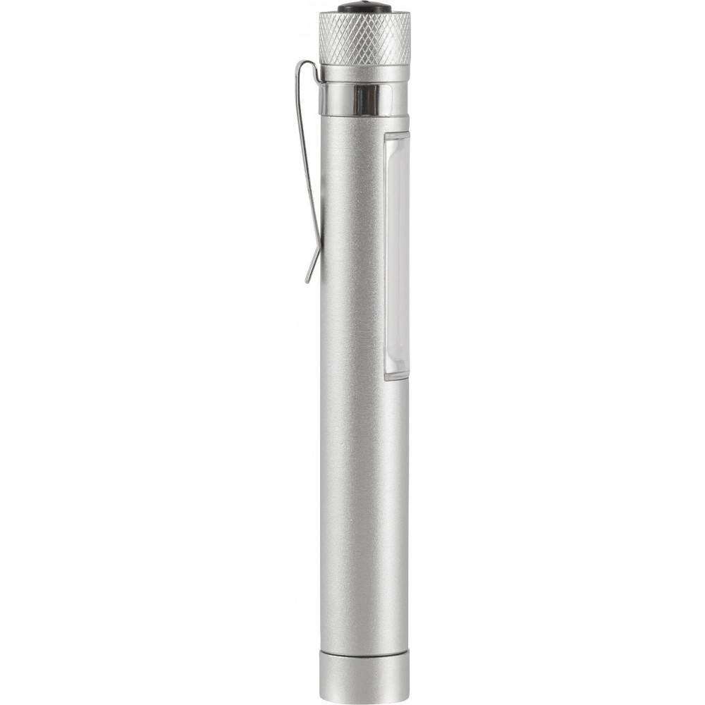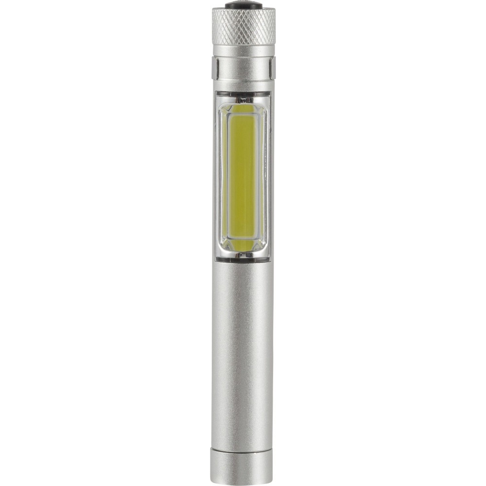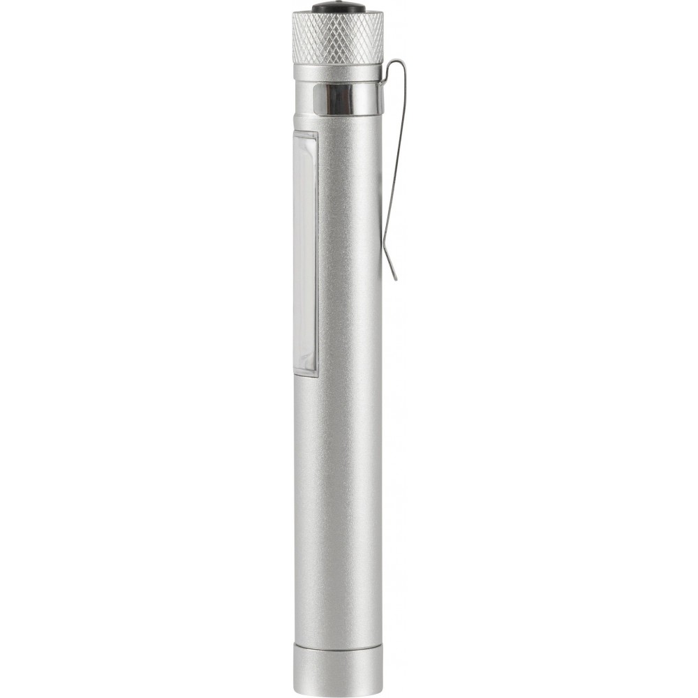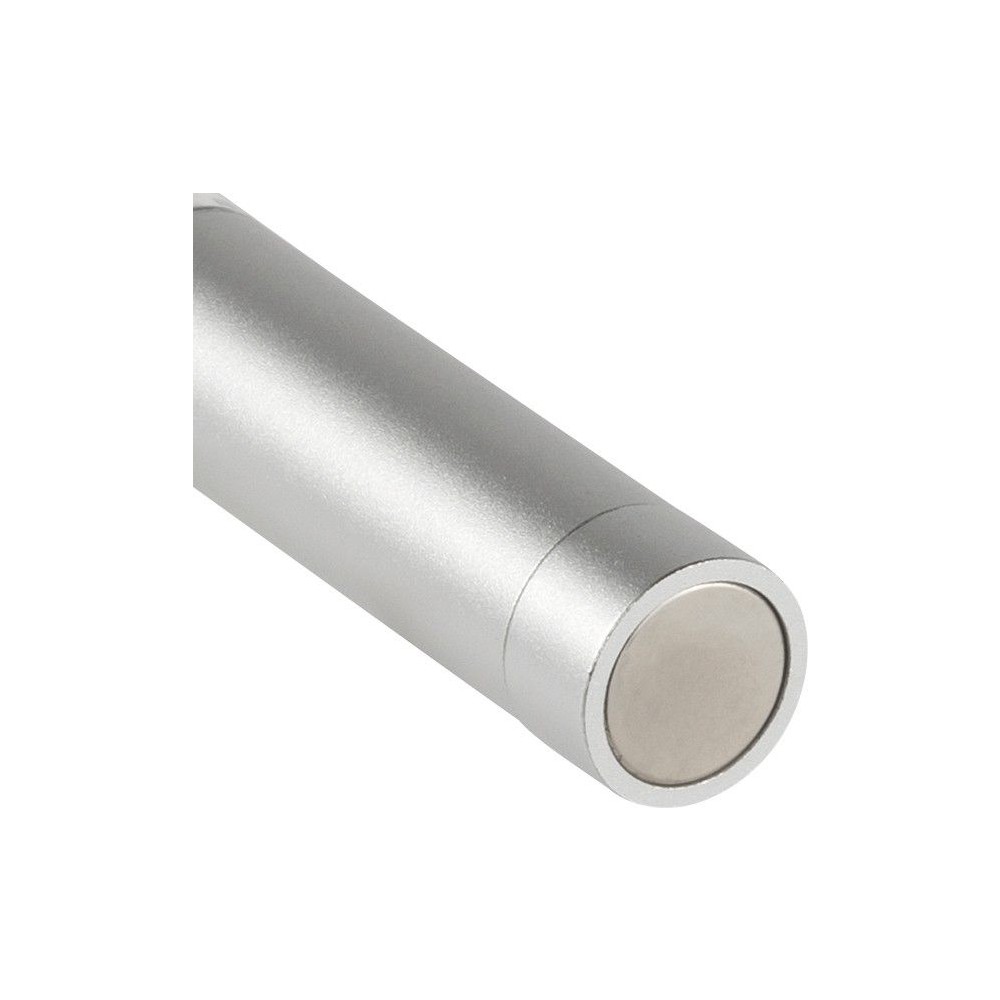 COB zseblámpa (50 lumen) mágnessel az alján és fém zsebklipsszel. Tartalmaz elemeket. Egyenként fehér dobozba csomagolva. Anyaga: alumínium.