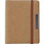 A5-ös méretű parafa mappa gumis zárópánttal, PU belsővel, kicsi hálós névjegytartó zsebbel, egy nagyobb zsebbel, 20 lapos jegyzettömbbel és tolltartó füllel (a tollat nem tartalmazza).