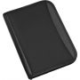 Mikroszálas, cipzáras mappa PVC szegéllyel és kihúzható füllel, belső zsebbel, 20 lapos jegyzettömbbel. A 8 karakteres számológép elemmel és napelemmel is működik.