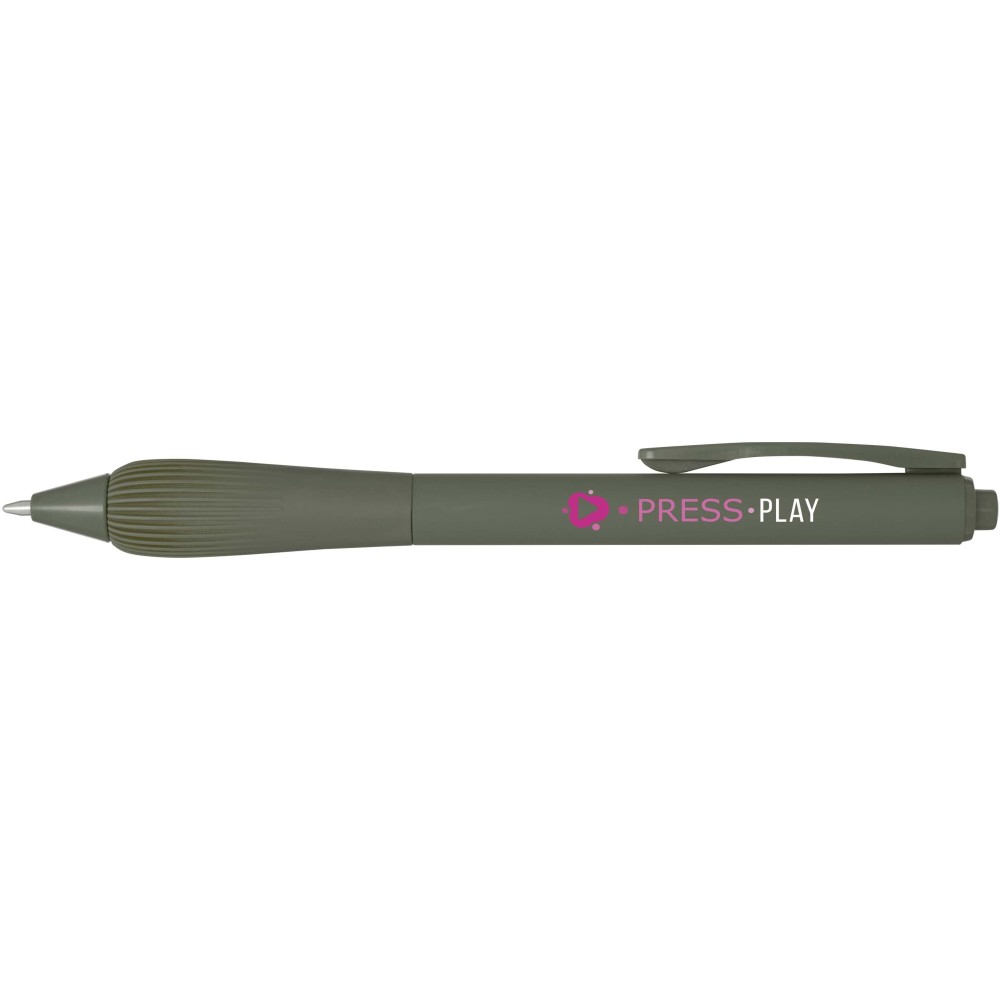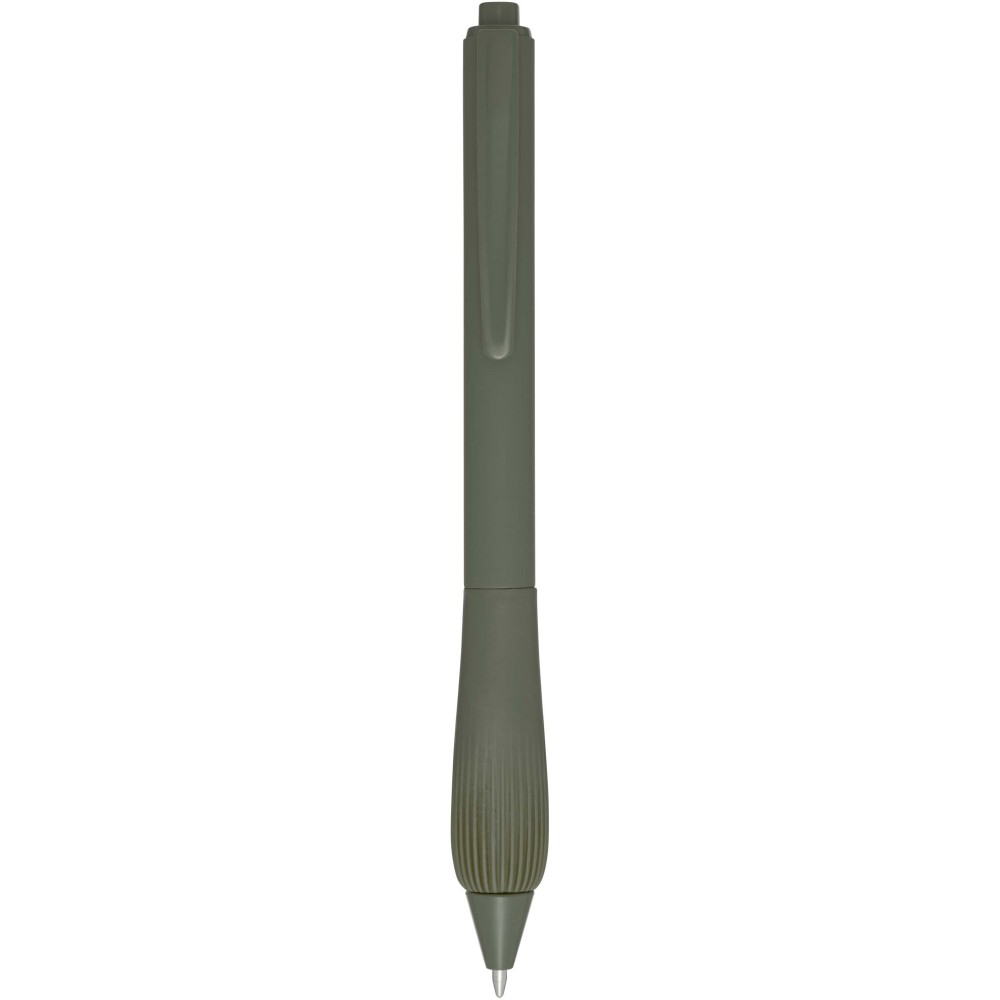 Újrahasznosított műanyag golyóstoll gumírozott tolltesttel és TPR anyagból készült fogórésszel. Kék tollbetéttel. Írási hossz: 1000 méter. Hegyméret: 1,0 mm.