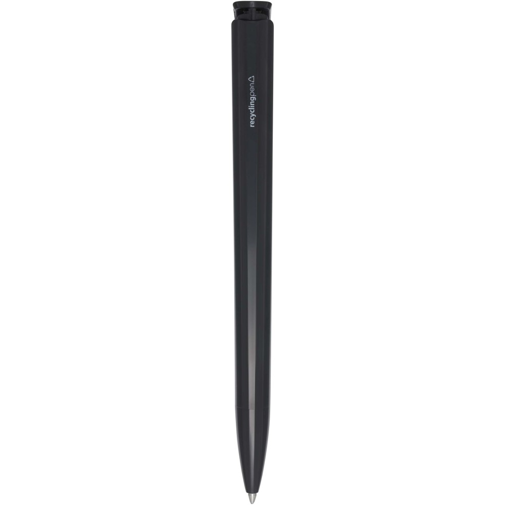 Golyóstoll, amelynek teste és klipsze újrahasznosított műanyagból készült, a hegy pedig rozsdamentes acélból. Kék tollbetéttel. Íráshossz: 3000 méter. Hegyméret: 1,00 mm. Németországban készült.