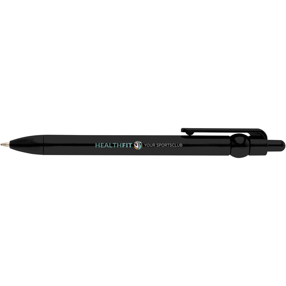 A Fidget golyóstoll fekete tintával újrahasznosított műanyagból készült, csökkentve az új műanyag felhasználásának szükségességét. Tollhegy mérete: 1,0 mm. Íráshossz: 1000 méter.