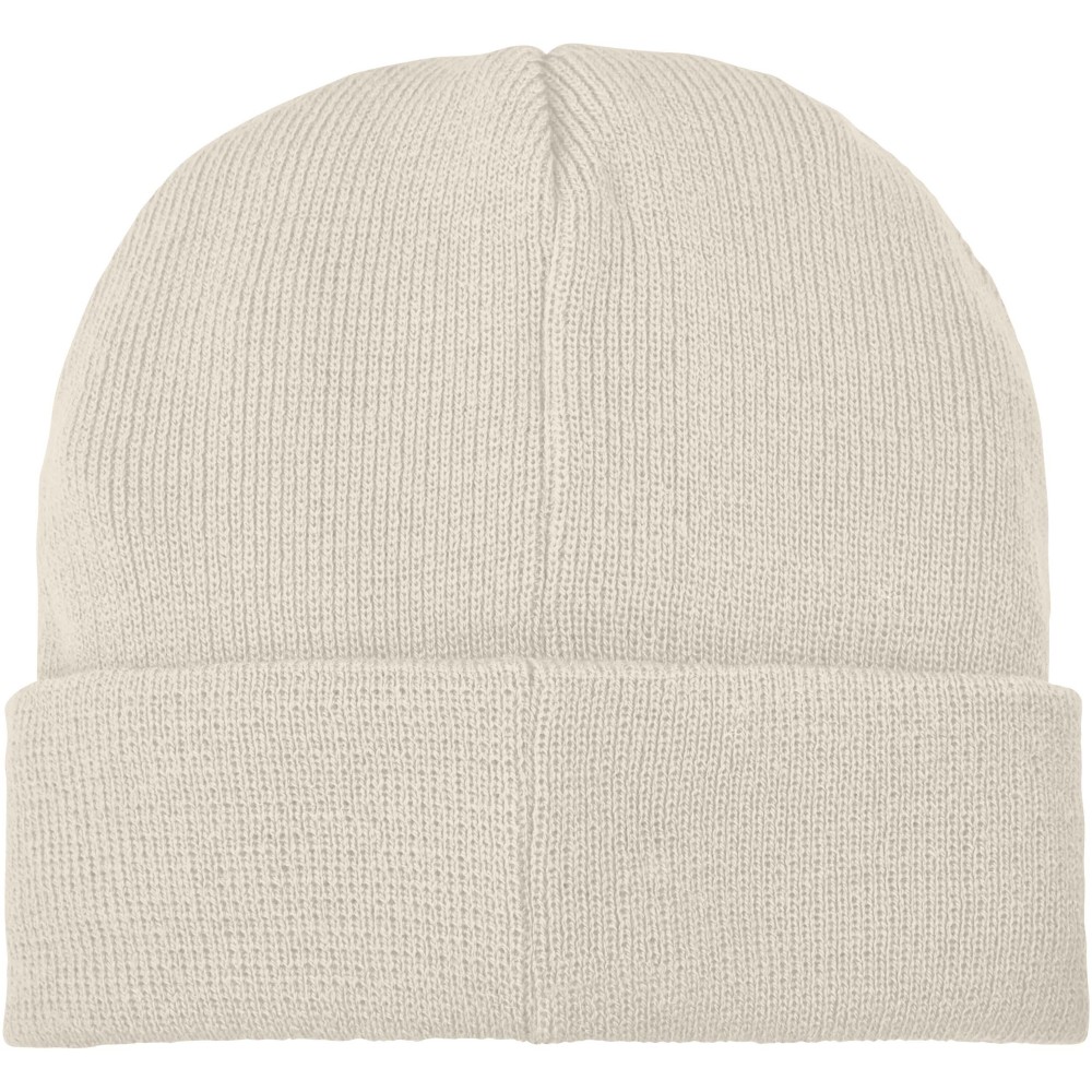 1x1-es kötésű 100% akril sapka 100% poliészter emblémázható címkével. A címke mérete: 75 x 30 mm.
