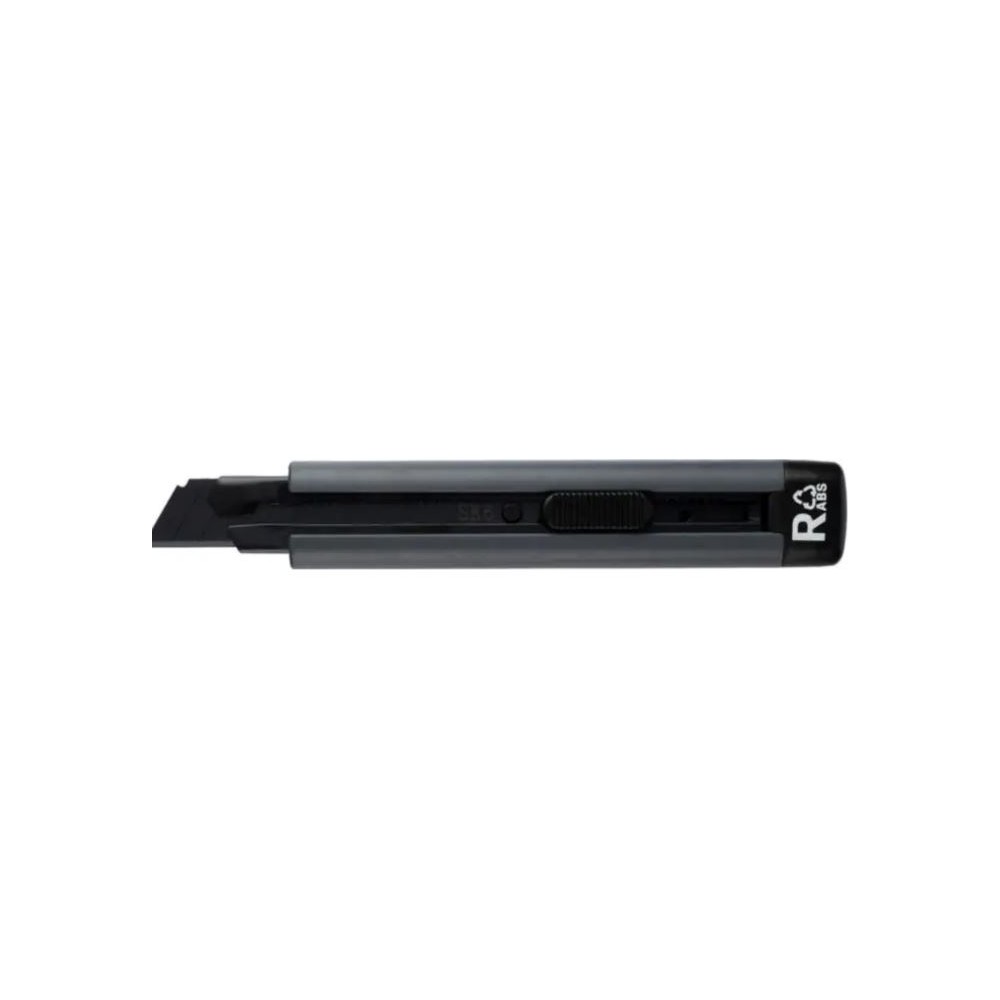 Újrahasznosított ABS műanyag vágókés lepattintható pengével, az újrahasznosított ABS műanyag alapanyagra utaló logóval. Barna kartondobozba egyedileg csomagolva érkezik.