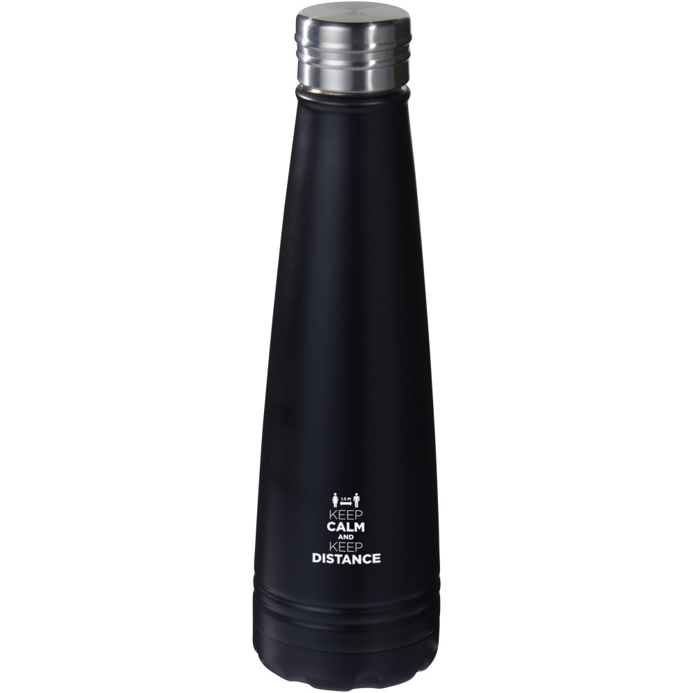 Duke vákumos palack. Belső fala réz, ennek köszönhetően 48 órás hideg- és 12 órás melegtartási képességgel rendelkezik. Szivárgásmentes. Szénsavas italokkal nem használható. Mosogatógépben nem mosható és mikrohullámú sütőben történő melegítésre nem alkalmas. Űrtartalom: 500 ml. Csomagolása Avenue díszdoboz.