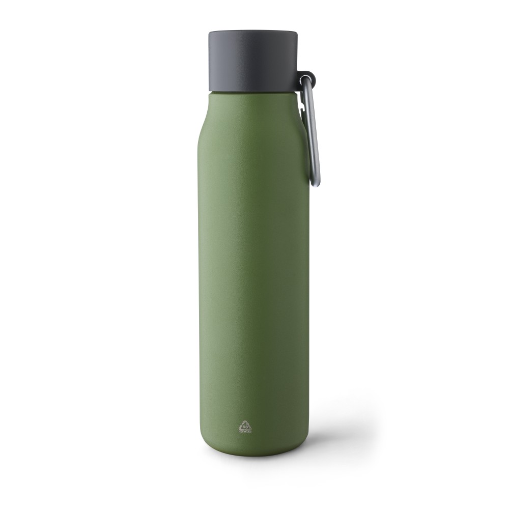 Újrahasznosított rozsdamentes acélból készült palack (600 ml-es). A belső anyaga 304-es, a külső anyaga pedig 201-es rozsdamentes acél. Szivárgásmentes PP kupakkal és alumínium karabinerrel. A karabiner mászáshoz nem alkalmas. A palack a benne tárolt italt 6 órán át melegen vagy 9 órán át hidegen tartja. Az újrahasznosított anyagra utaló logó a palackra van gravírozva. Csomagolása barna papírdoboz.