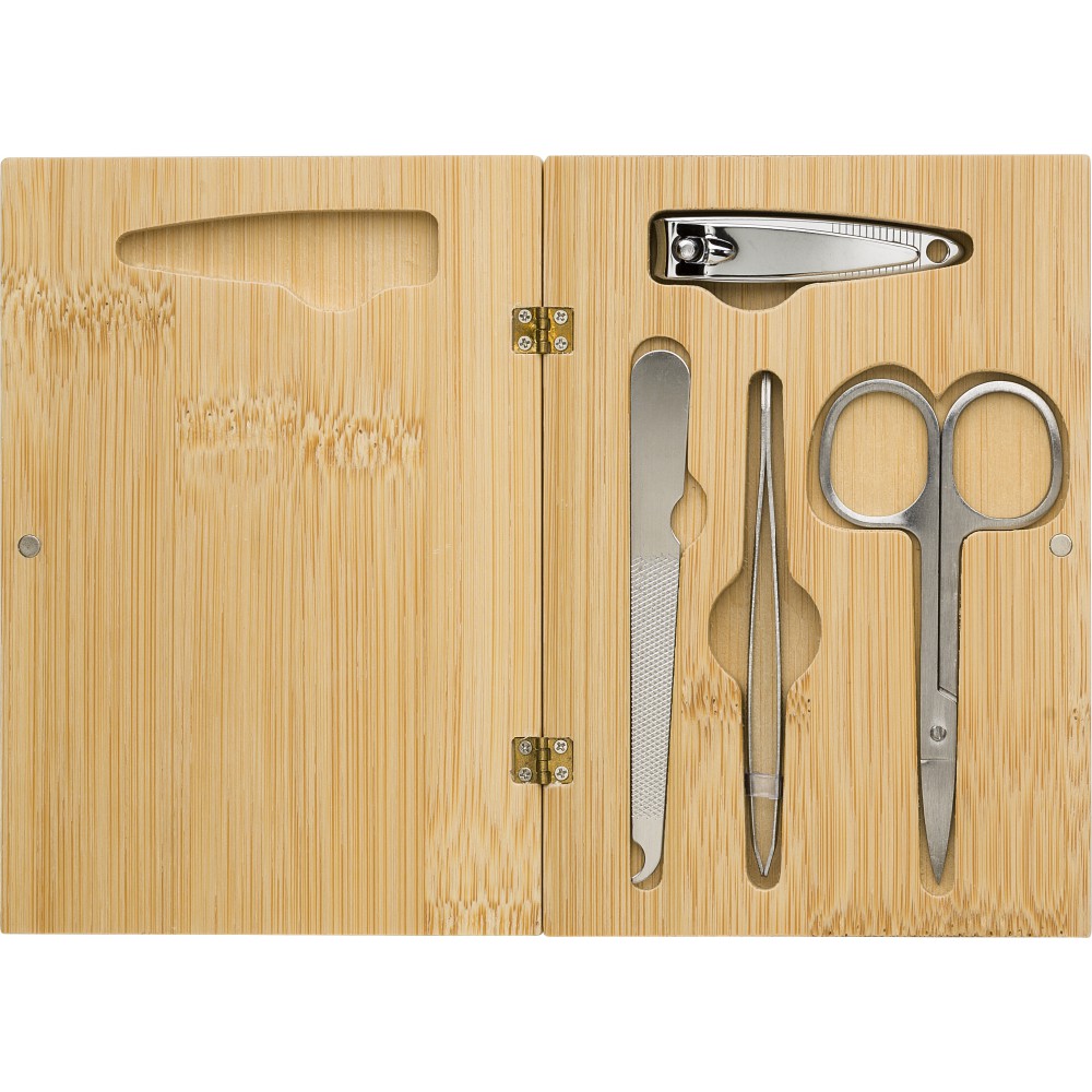 Manikűrkészlet bambusz dobozban, barna
