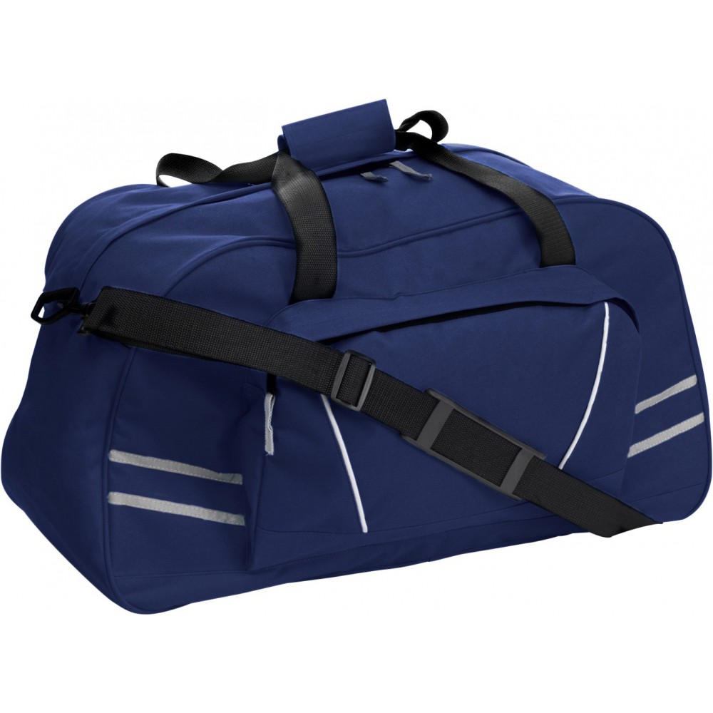 Sport- és utazótáska nagy első zsebbel, fényvisszaverő csíkkal, vállpánttal. 600D poliészter.